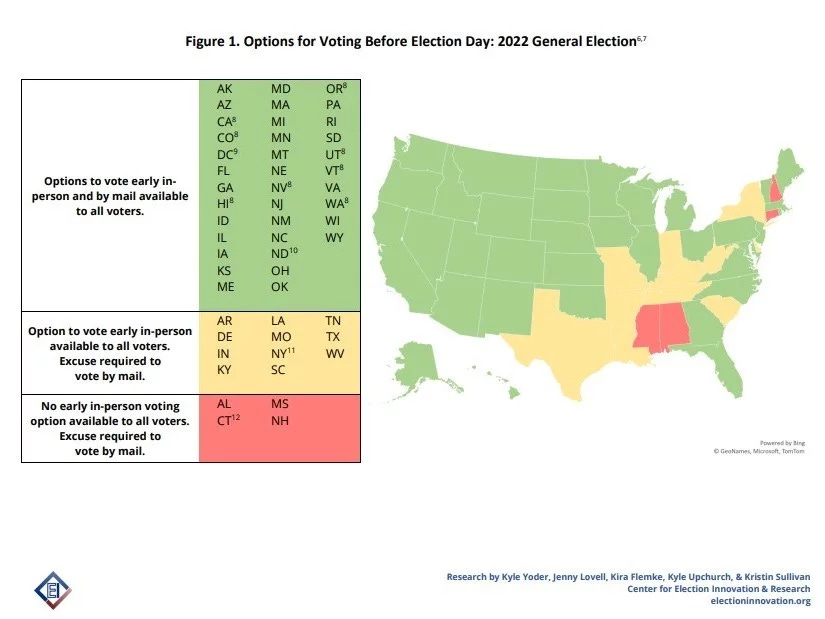 Many (but not all) states have passed laws in recent years either allowing for early in-person voting or relaxed rules for absentee voting — including the key battleground states of Arizona, Ohio, and Virginia.